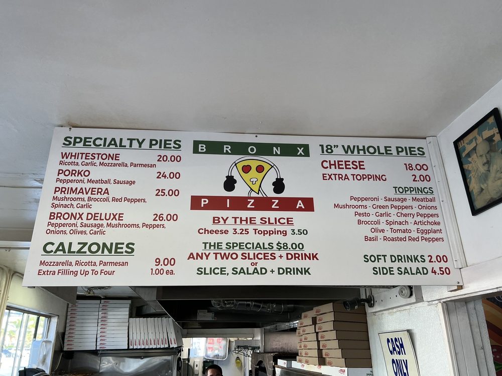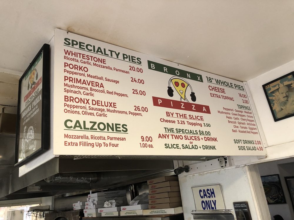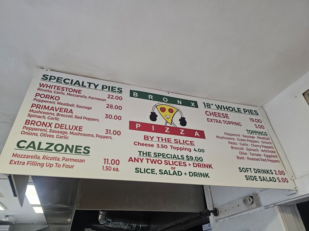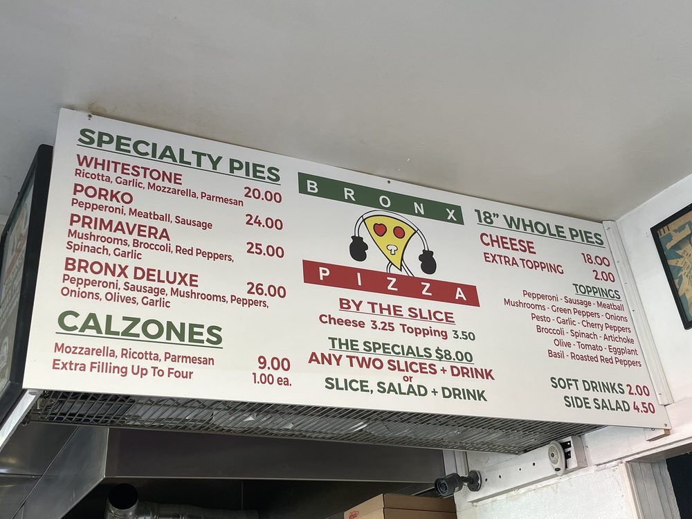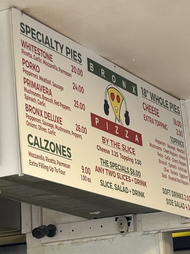 Bronx Pizza Menu (Update 2025)
